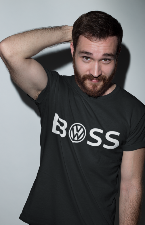 Ko se črna majica sreča s samozavestjo, nastane B❍SS. Črka “O” je zamenjana z znanim krogom, zato je sporočilo jasno: ti vodiš kolono. Idealna za bradate šefe, garažne mojstre in vse, ki vozijo življenje po svojih pravilih.
