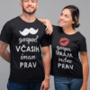 Črna kratka rokava + drzen bel print = formula za poglede in smeh. En nosi PROBLEMS 99, drugi AIN’T 1, skupaj pa jasno povesta, da vaju nič ne vrže iz tira. Za zmenke, kavice in spontane fotkanje trenutke, kjer je kemija tako močna kot outfit.