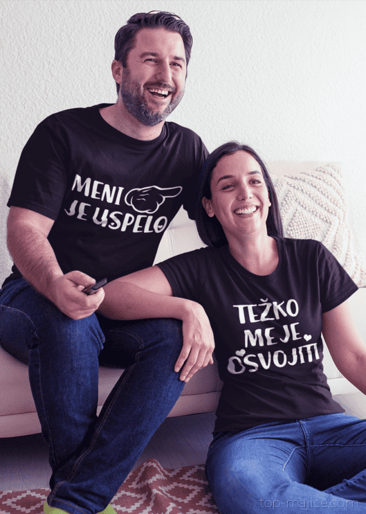 Ko je misija osvojiti srce uradno uspela! 😄 Komplet majic z napisoma TEŽKO ME JE OSVOJITI in MENI JE USPELO poskrbi za smeh in malo zdravega heca. Perfektno za pare, ki radi pokažejo, kdo je zmagal bitko za srce. 💘