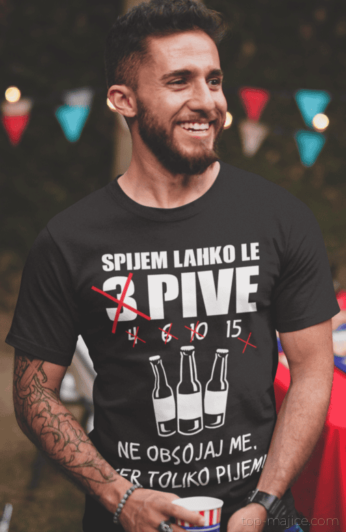 Ko rečeš ‘samo tri pive’… pa nekako prideš do 15. 🍺😄 Črna majica z napisom “SPIJEM LAHKO LE 3 PIVE 4 6 10 15 NE OBSOJAJ ME, KER TOLIKO PIJEM!” je top fora za pivoljube, rojstne dneve in petkove pobege.
