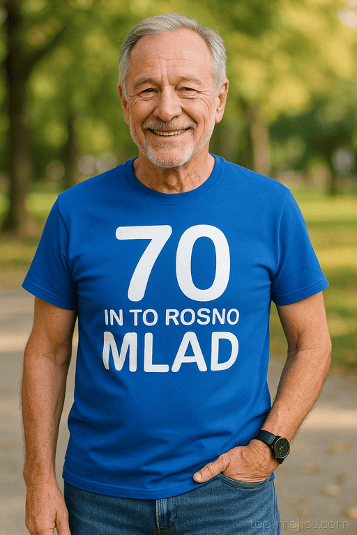 V tej modri majici s kratkimi rokavi je jasno: izkušnje + šarm + humor = zabava do jutra. Napis pove svetu, da je rojstni dan le nova stopnja, ne pa omejitev. Pripravi se na objeme, high-five in kup fotk!