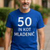 Ko torta napolni dvorano, naj majica napolni smeh. Črna kratka majica z jasnim belim napisom poskrbi, da vsakdo ve: leta so številke, duh pa evergreen. Od prve čestitke do zadnjega selfieja – pozornost bo njegova.