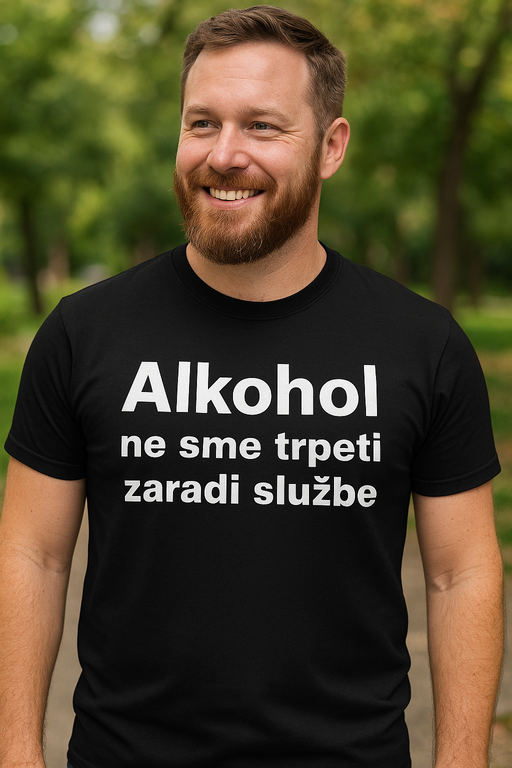 Ko ura bije 16:01, ta majica spregovori namesto tebe. 😄 ‘Alkohol ne sme trpeti zaradi službe’ pove vse naenkrat. Popolna za after-work junake, sodelavce in prijatelje z zdravim humorjem! 🍻