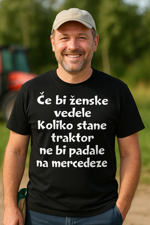 🚜 Ko se konjske moči merijo v hektarjih, ne v kromu! Napis “Če bi ženske vedele Koliko stane traktor ne bi padale na mercedeze” pove vse namesto vas.