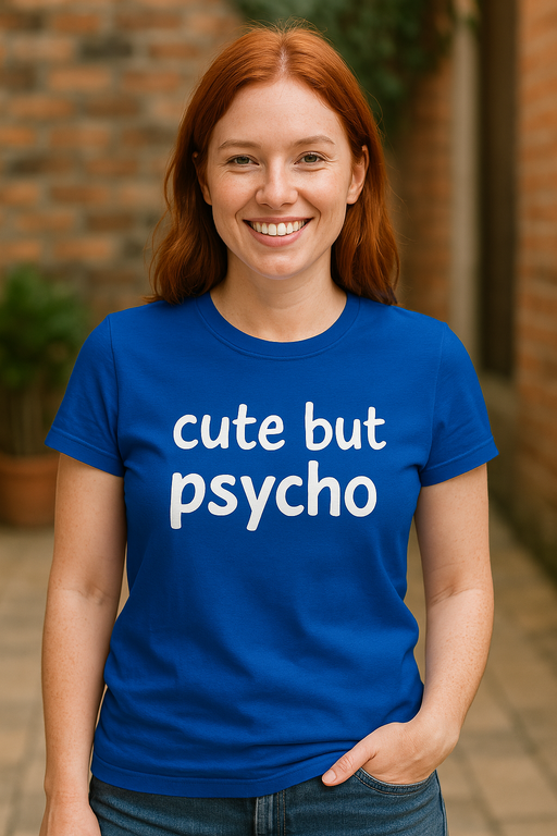 😜 Prikupen/a? Seveda. Malo nor/a? Samo občasno. Zato nosiš ‘cute but psycho’ – naj majica pove, preden moraš ti!