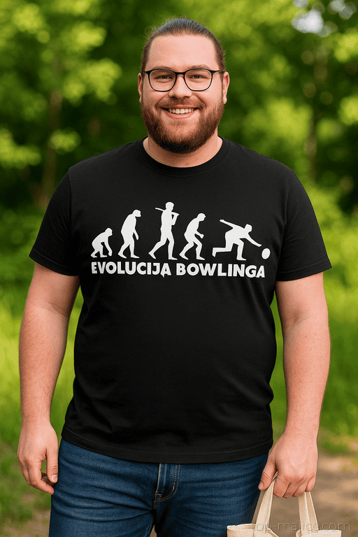 🎳 Od prvih korakov po dveh nogah do popolnega strika – EVOLUCIJA BOWLINGA, zdaj na tvoji najljubši majici!