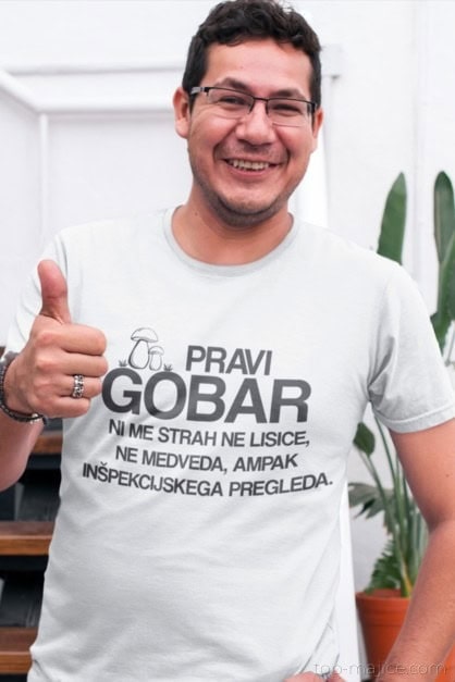 Ko greš po jurčke, se zatrese pol gozda – ampak ko zaslišiš “dober dan, inšpekcija”, srce preskoči! Ta bela kratka majica združi gobarsko strast in piker humor, ki bo nasmejal vsak zbor pred tehtnico. Nosljiva šala za sprehode po mahu, tržnico ali gostilno po uspešnem ulovu.
