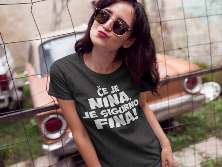 Črna, oprijeta kratka majica z belim drznim napisom jasno pove, kdo je tu res fina – Nina! Za rojstne dneve, žure ali tiste ponedeljke, ko rabiš kompliment že na vhodu. Naj jo nosi Nina ali pa prijatelj, ki želi postati njen najljubši darovalec.