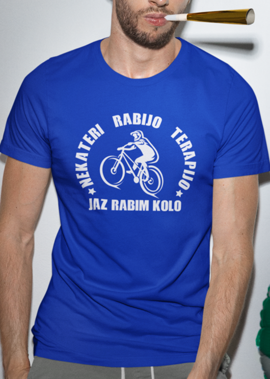 Ta modra kratka majica z belim potiskom kolesarja je uradno opravičilo za vse izgovore: manj dram, več kilometrov! Povej svetu, da je tvoja najboljša terapija svež zrak, dobra pot in malo znoja. Nosljiva na turi, v pisarni ali na kavi – kjerkoli je kolo, je dobro razpoloženje.