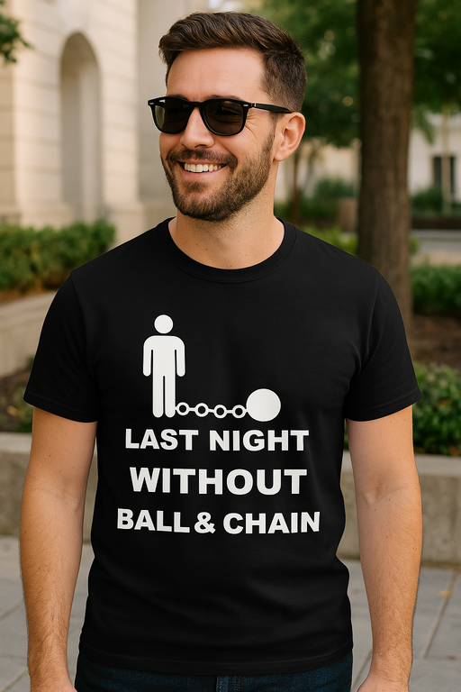🎉 Še zadnjič brez “krogle in verige”? Reci to z majico: LAST NIGHT WITHOUT BALL & CHAIN!