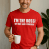 Ko začnejo dežurati vnuki, sosedje in “sam še to” opravila, samo pokažite prsa – sporočilo je jasno in glasno. Črna barva, bel potisk in nič izgovorov: urnik zdaj vključuje kavico, dremež in zaslužen mir.
