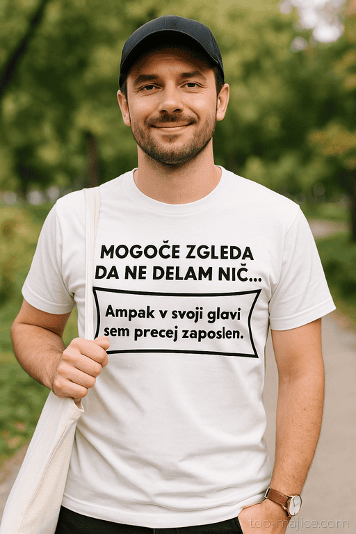 😴 Na zunaj mir, v glavi pa brainstorming! Majica z napisom ‘MOGOČE ZGLEDA DA NE DELAM NIČ… Ampak v svoji glavi sem precej zaposlen.’ pove vse namesto tebe.