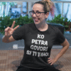 Črna kratka majica z velikim belim potiskom je tako jasna, da jo razume še brivski aparat. Ko jo oblečeš, se družba smeje, ti pa samozavestno pogladiš brado – prioritete, a ne? Kot ustvarjena za vsakodnevne dogodivščine, pive po službi in selfije, kjer brada igra glavno vlogo.