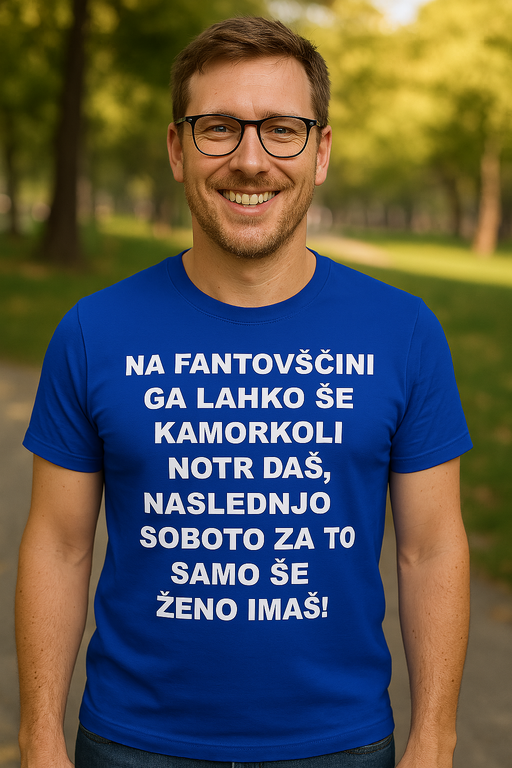 🤣 Ta majica je manifest fantovščine: “NA FANTOVŠČINI GA LAHKO ŠE KAMORKOLI NOTR DAŠ, NASLEDNJO SOBOTO ZA TO SAMO ŠE ŽENO IMAŠ!”
