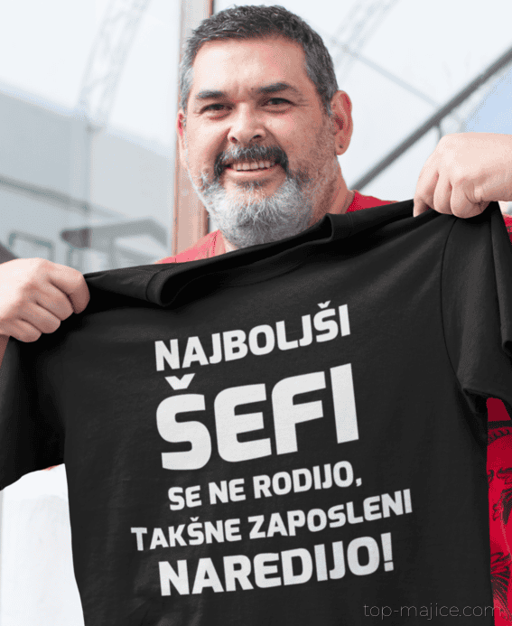 😜 Šef legenda? Seveda – ker ima takšno ekipo! Majica z napisom ‘NAJBOLJŠI ŠEFI SE NE RODIJO, TAKŠNE ZAPOSLENI NAREDIJO!’ pove resnico, ki si zasluži aplavz.