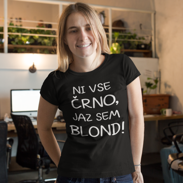 Črno na belem, blond na jeziku! 😄 Majica z napisom ‘NI VSE ČRNO, JAZ SEM BLOND!’ nasmeje še tako resne face. Top darilo za samozavestne blondinke in vse ljubiteljice humorja. ✨