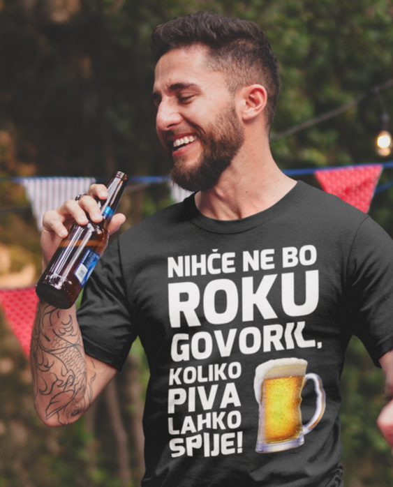 🍻 Krigel gor! Ta črna majica jasno pove: NIHČE NE BO ROKU GOVORIL, KOLIKO PIVA LAHKO SPIJE!