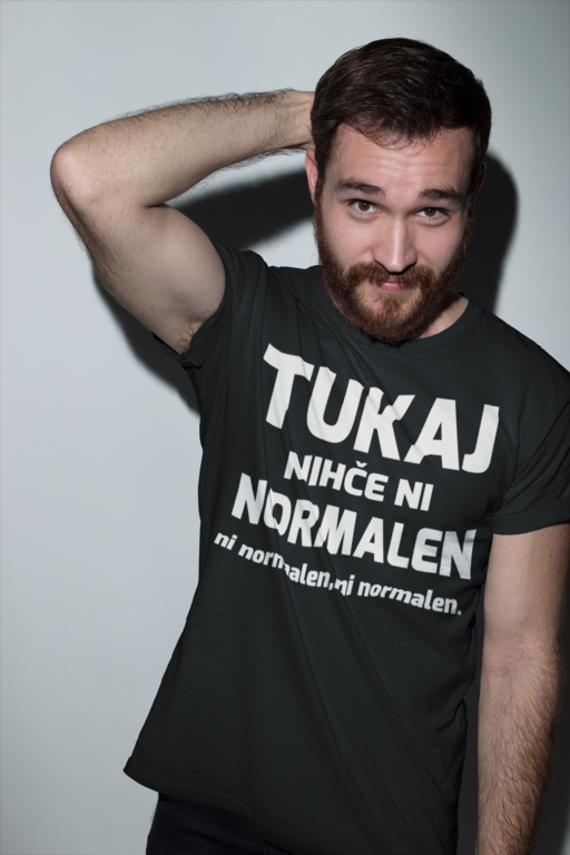 🤪 Ko normalnost pobegne skozi okno, ta majica glasno naznani: TUKAJ NIHČE NI NORMALEN ni normalen, ni normalen