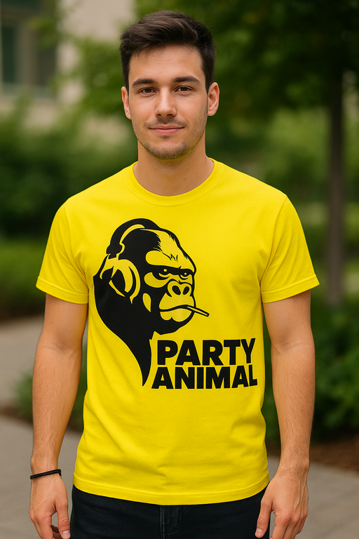 🦍🎧 Rumena kot sončni žur in jasno: PARTY ANIMAL – pove vse, še preden prvi bas pade!