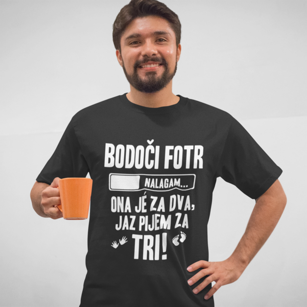 🤰🍺 Status nadgradnja: BODOČI FOTR NALAGAM… ONA JE ZA DVA, JAZ PIJEM ZA TRI! – majica, ki pove na glas, kar vsi mislijo.