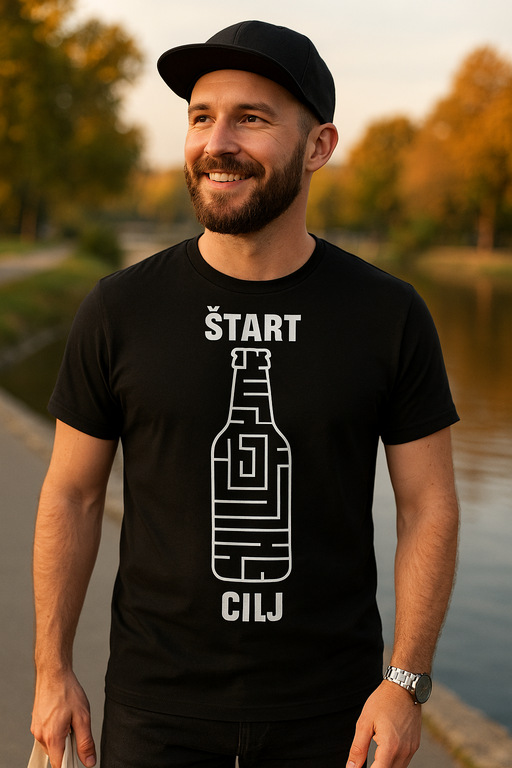 Konec blodnje med šankom in hladilnikom! 🍺 Ta majica s pivskim labirintom jasno pove: ŠTART CILJ. Popolna za pivoljube, žurerje in darila, ki res zadanejo. 😄