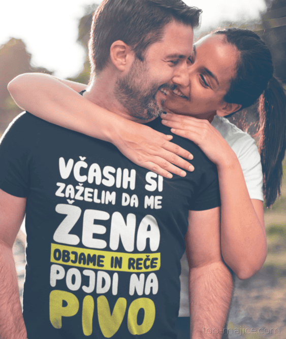 Ko se ljubezen in pivo srečata, nastane legenda! 🍺 Ta smešna majica jasno pove: VČASIH SI ZAŽELIM DA ME ŽENA OBJAME IN REČE POJDI NA PIVO. Idealna za može, fante in vse pivoljube z dobrim humorjem! 😄