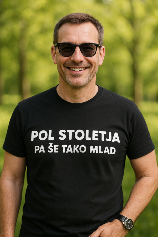 🎉 50 svečk? Ni panike! Majica z napisom POL STOLETJA PA ŠE TAKO MLAD pove na glas, kar drugi šepetajo.