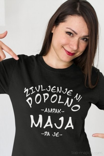 Življenje ni popolno… ampak ta majica o Maji pa je! 😄 Črna klasika z jasno izjavo: “ŽIVLJENJE NI POPOLNO – AMPAK MAJA – PA JE”. Popolno darilo za vsako Majo in za vse, ki jo obožujejo. 🎁