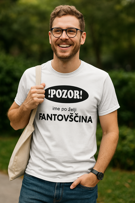 Dodaj ime, zberite ekipo in naj majica opravi delo: opozori, nasmeje in poveže. Ta kos je vaš VIP znak za smeh, dobre fore in fotke, ki bodo še dolgo krožile po chatih.