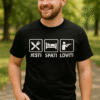 Ta zelena kratka majica z belim potiskom lovca in psa pove vse brez dolgih razlag. Za vse, ki štejejo dni do naslednjega pogona in se v ponedeljek pretvarjajo, da so navdušeni nad sestanki. Obleci jo in elegantno opraviči svojo “divjo” zbranost v službi.