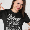 Črna kratka majica je tvoj manifest: šoping je talent, kuhanje pa občasni kompromis. Nasmeh na obrazu, voziček v roki – in večerja? Hja, mogoče jutri. Nosijo jo vse, ki vedo, da se najboljši recept začne pri blagajni.