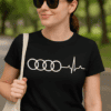 Ta črna majica združi ljubezen do Volkswagna in srčni EKG v en sam duhovit potisk. Vsak pospešek dvigne frekvenco, vsak klik prestave nariše črto sreče. Če ti motor zapoje, srce pa odgovori – tole je tvoja uniforma.