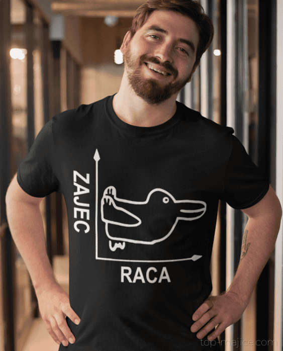 Ta črna kratka majica z duhovitim grafom spremeni vsak hodnik v improviziran debatni krog. En pogled in ekipa že razpravlja, kdo vidi zajca in kdo raco – rezultat: ful smeha, nič dolgčasa.
