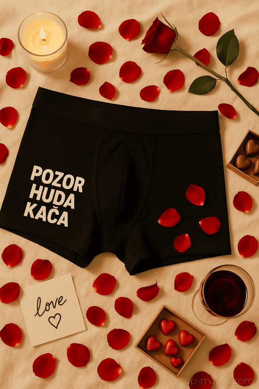 Ko črna klasika sreča drzen napis, nastane kos, ki že ob pogledu dvigne obrvi in razpoloženje. Te moške boxer hlače s sloganom POZOR HUDA KAČA so za tiste, ki radi povejo na glas (ali tiho pokažejo), da se z njimi ni hecati. Od jutra do večera – humor vedno na pravem mestu.