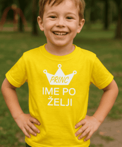 Kraljevsko modra barva + sončno rumen tisk = kombinacija, ki naredi malega junaka zvezdo igrišča in družinskih fotk. Ko otrok obožuje svojo sestrico, naj to vidi še sosedova mačka – majica pove glasneje (in bolj prikupno) kot megafon.