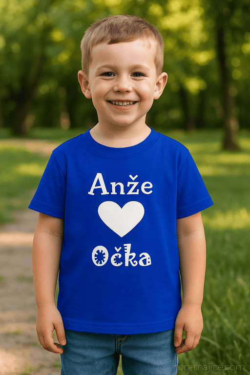 Ta modra kratka otroška majica je prava mini izjaveljka ljubezni – simpatična, glasna in 100 % fotogenična. Ko jo obleče mali junak, se ve, kdo je šef cartanja. Popolna za trenutke, ko želite, da svet ve: očka je number one!