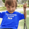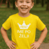 Svetlo siva majica s kratkimi rokavi in rožnatim napisom jasno pove, kdo vodi ekipo igrač in staršev. Popolna za vsakdan, ko je treba s šarma in nasmehom postaviti pravila. Naj vsi vedo: majhna? Ja. Šefica? Absolutno!