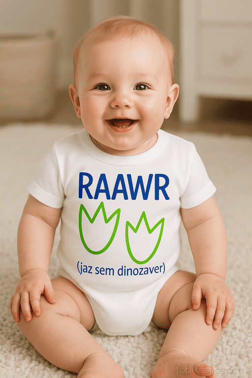 RAAWR v mini izdaji! 🦖 Bel bodi s kratkimi rokavi, zelenimi dino stopinjami in sloganom RAAWR (jaz sem dinozaver) pove vse brez prevajalca. Popoln za novorojenčke, dojenčke in starše z divjim smislom za humor.