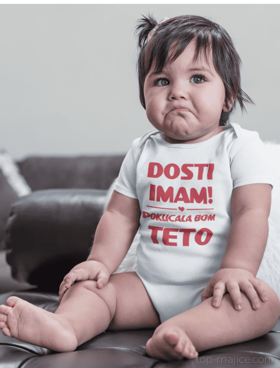 Ko je mera polna, gre klic na teto! 😂 Bodi z napisom “DOSTI IMAM! POKICALA BOM TETO” pove vse brez joka. Popolno za starše, tete in baby shower zabave! 🎉