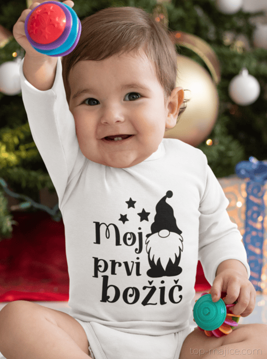 Škratovski drip za najmanjše! 🎅✨ Bodi z napisom ‘moj prvi božić’ spremeni prve praznike v mini spektakel in smeh. Perfektno za novorojenčke in starše s prazničnim humorjem. 📸