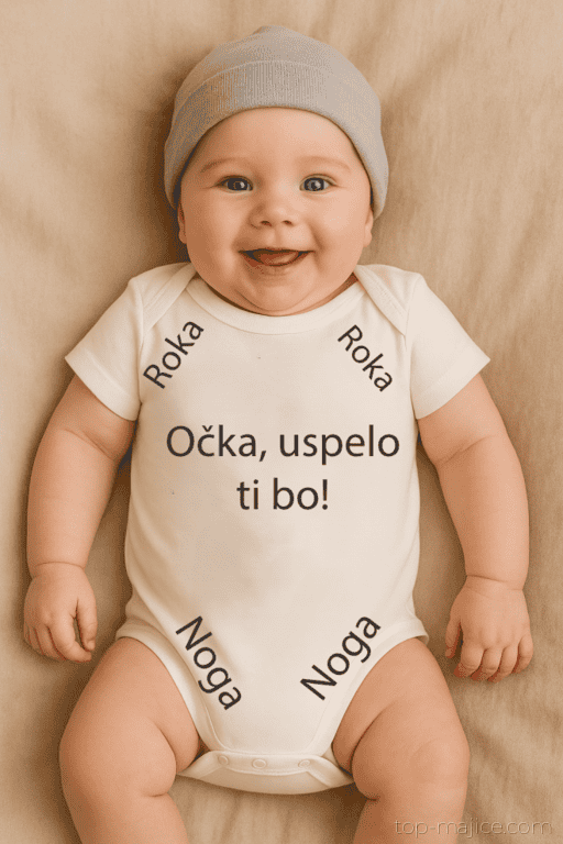 🍼 Ko je na bodiju zapisano: “Roka Roka Očka, uspelo ti bo! Noga Noga”, se tudi previjanje spremeni v zmago!