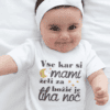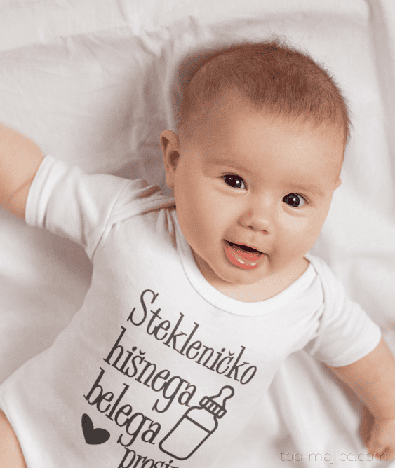 Beli bodi s kratkimi rokavi in grafiko stekleničke ter srčka je mini uniforma za največje ljubitelje mlečnih degustacij. Napis poskrbi za smeh, dojenček pa za šov – na obiskih, fotkanjih in družinskih kosilih. Idealno, ko želite povedati veliko, še preden se nauči govoriti!