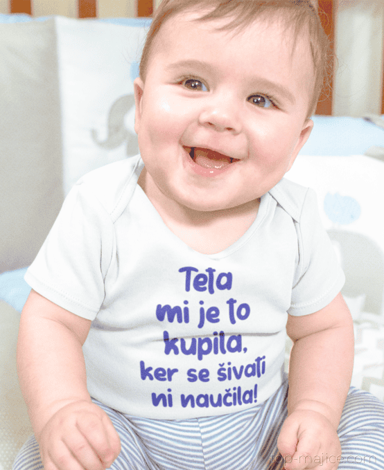 Ta bel, kratkorokavni bodi poskrbi za smeh na vsakem družinskem srečanju. Pove točno to, kar mislijo vse tetke: zakaj bi šivala, če lahko kupiš nekaj boljšega? Odličen za fotkanje, obisk pri babici ali prvi tetičin “razvajalni” trenutek.