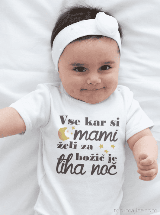 Bel otroški bodi s simpatično lunico in zvezdicami je smešen opomnik, da so najboljša darila včasih… tiha. Idealen za male zaspance (in starše, ki to šele sanjajo), prinese nasmeh na vsako božično druženje in krasno izgleda na fotkah.