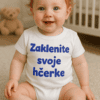 Ta bel bodi s kratkimi rokavi in rdečim napisom TROUBLE je kot zabaven opozorilni znak: pripravite poljubčke, preglejte plenice in vklopite fotoaparat. Kot ustvarjen za trenutke, ko je angelček tik pred novim podvigom (ali mini koncertom).