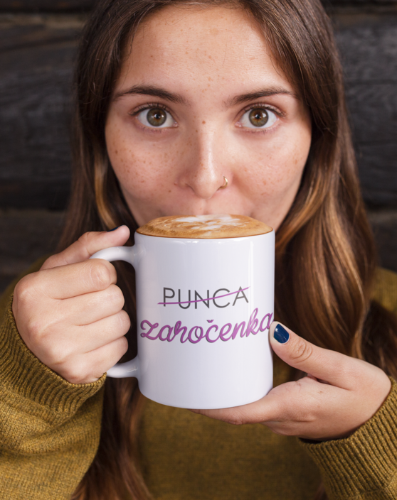 Ta skodelica s samozavestnim napisom “PUNCA zaročenka” je jutranji megafon za vse, ki bi rade nežno, a jasno pokazale svoj novi bling. Vsak požirek je mini slavje, vsak penast brk na kavi pa razlog za še eno zaročno fotko.