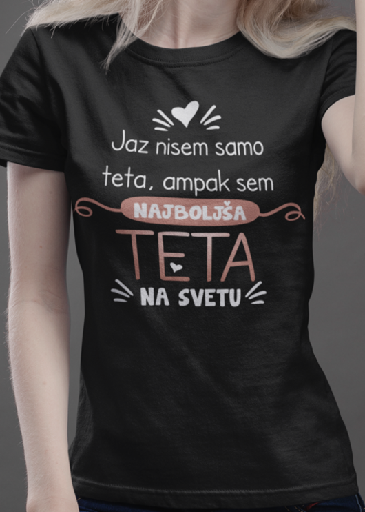 😄 Ko teta ni samo teta, ampak legenda! Ta črna ženska majica jasno pove: ‘Jaz nisem samo teta, ampak sem NAJBOLJŠA TETA NA SVETU’.