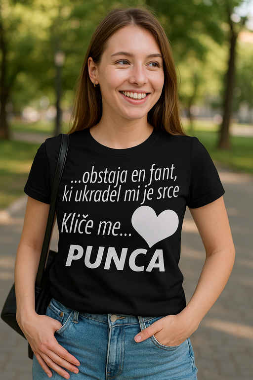💖 Ko en fant ukrade tvoje srce, naj to izve ves svet — črna majica z napisom ‘…obstaja en fant, ki ukradel mi je srce Kliče me… ♥ PUNCA’ to pove namesto tebe!