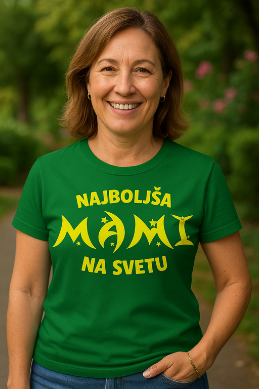 💚 Ko je mami res top, naj to na glas pove zelena majica: NAJBOLJŠA MAMI NA SVETU!
