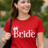 Ta rdeča kratka majica z belim napisom in loading barom je uradni status bodoče neveste: pripravljena na konfete, še ne na “kje je daljinec?”. Popestri fotke, nasmeji družbo in jasno pove, kdo je današnja VIP. Idealna za mestni pohod ali prosecco pre-party.
